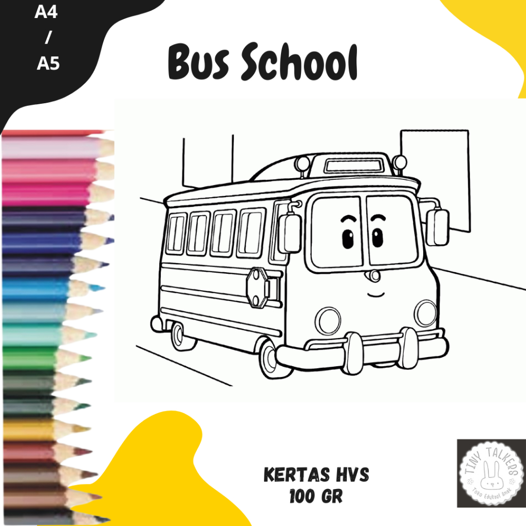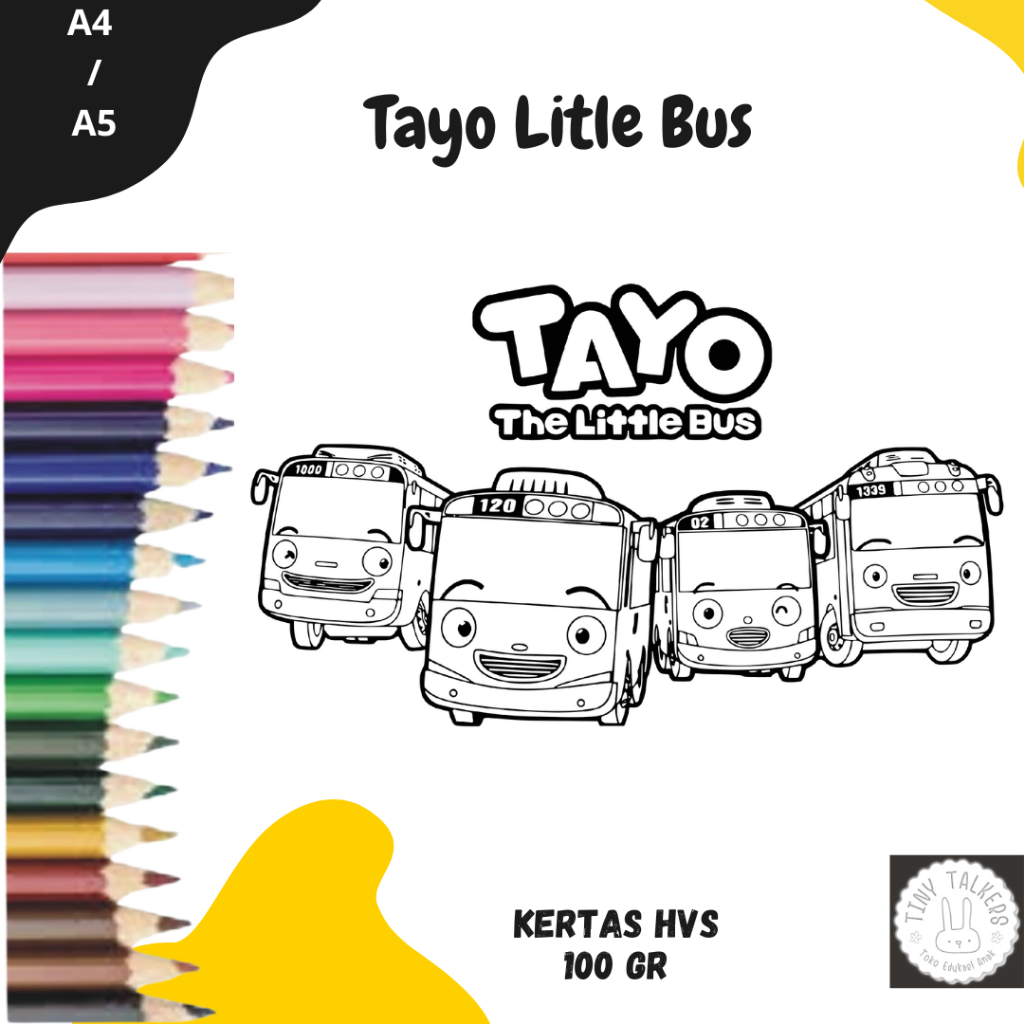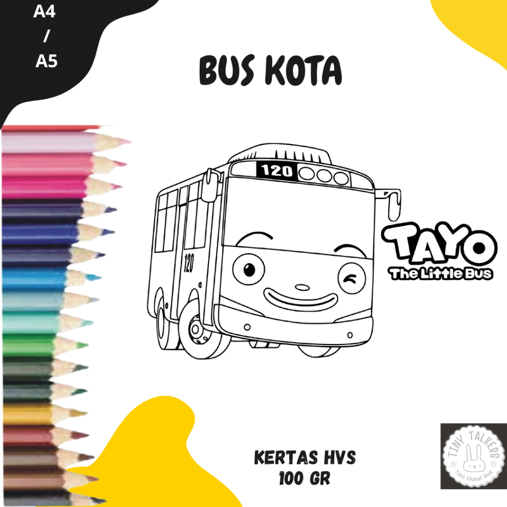 Mewarnai Gambar Tayo untuk TK SD PAUD Kertas HVS 100gr Bukan Buku Mewarnai