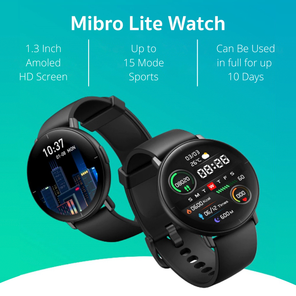 Mibro Official Lite 1.3 Inch Smartwatch Jam Tangan Pintar Amoled Screen Waterpoof Heart Rate Monitor, Spo2 Calorie Count, Step Count, Sleep Monitor, Alarm