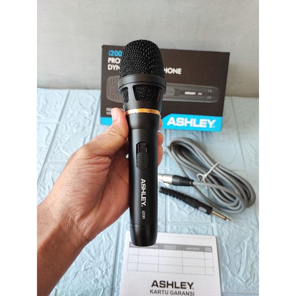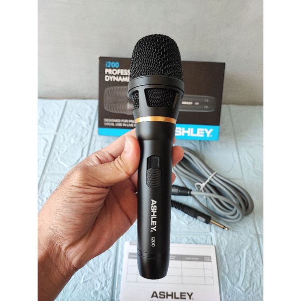 Mic Dynamic Kabel Ashley i-200 i 200 Black Original Mik Vokal Kabel i200 Ashley Microphone Wire Cable ASLI ORI Ashley Suara Detail Jernih WARNA Hitam Body Mic Besi High Quality