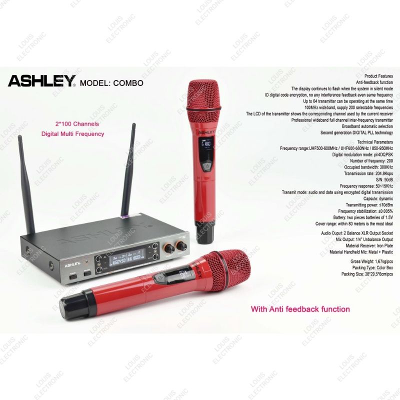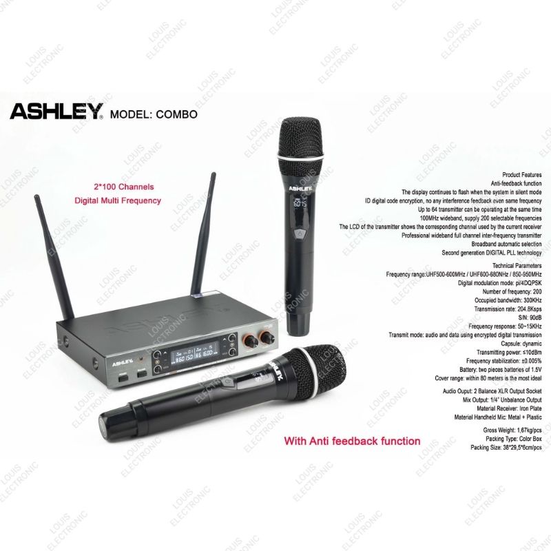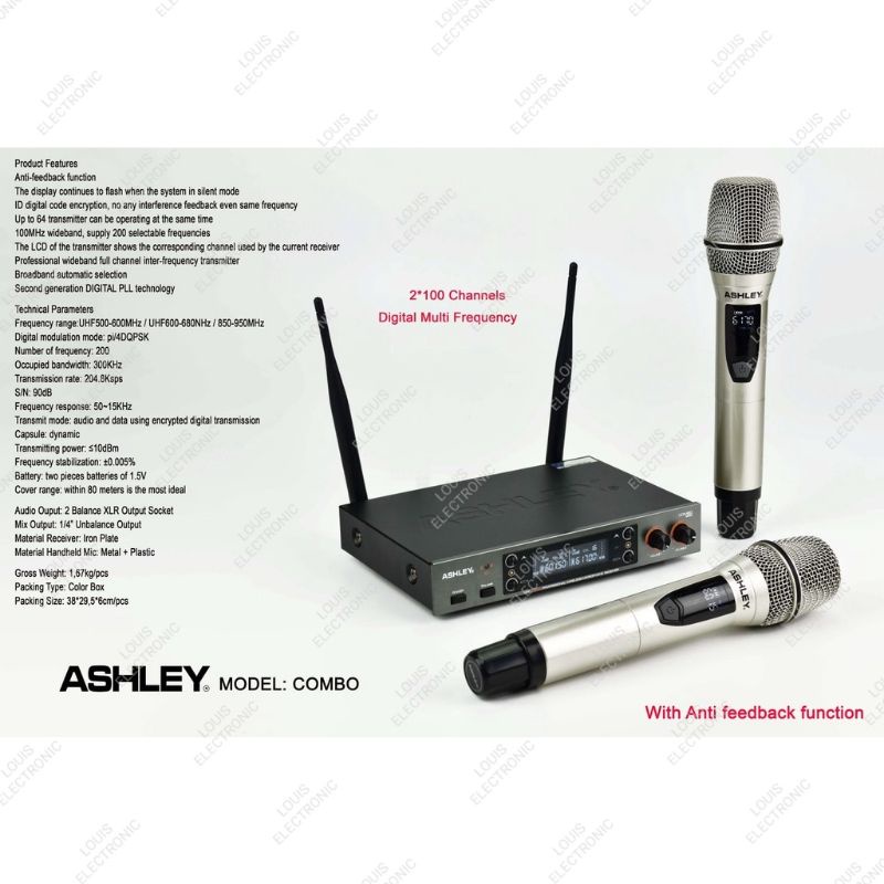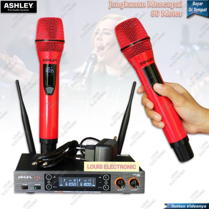Mic Microphone Wireless ASHLEY COMBO 2 Mic Handheld Mikrofon Ashley ORIGINAL