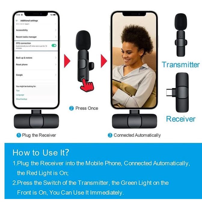Mic Wireless HP Vlog Youtuber Portable Microphone Mic Clip On Wireless