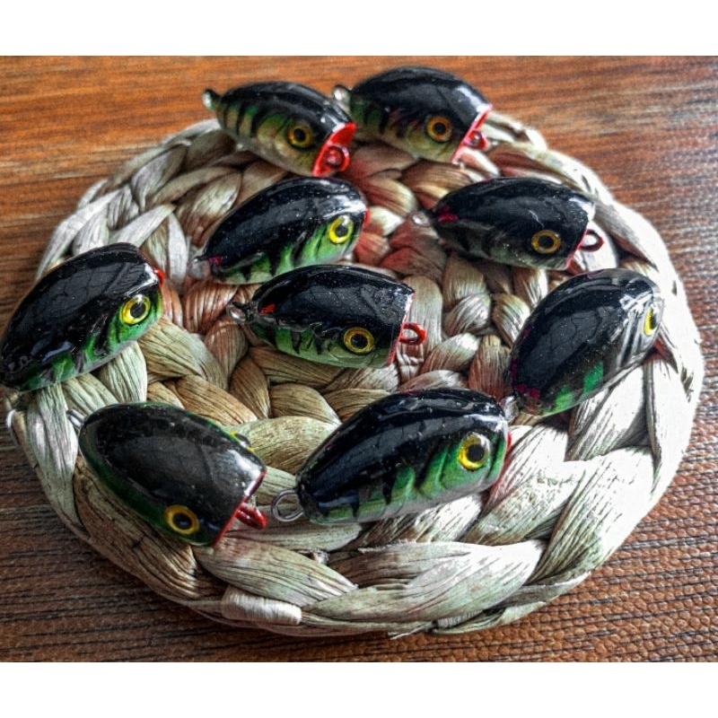 Micro Popper Lure | Hijau Popper Kecil | Mini Popper, Top Water | Umpan Casting | Hand Made Lures
