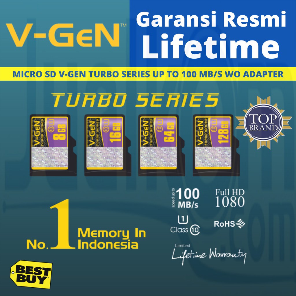 Micro SD V-gen 128GB Turbo Series MicroSD Vgen 128 GB Class 10 V gen Original Non Adaptor