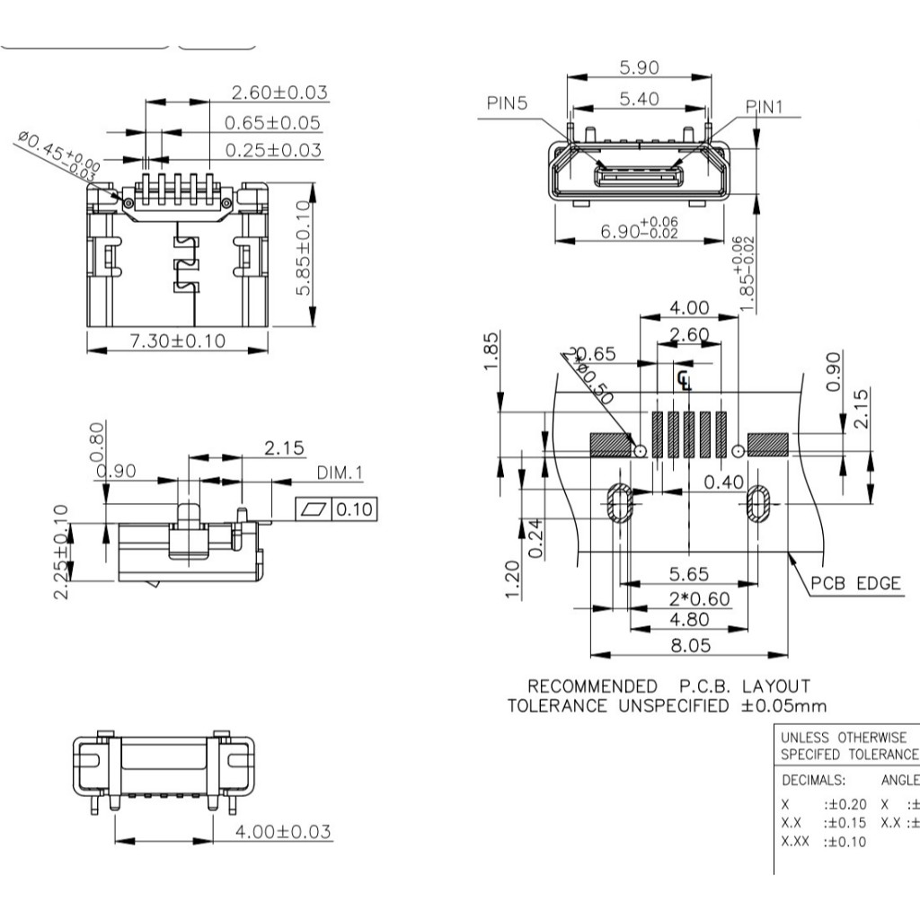 Micro USB Socket Female 5-Pin 5P MicroUSB Connector SMD MC-605-AWT