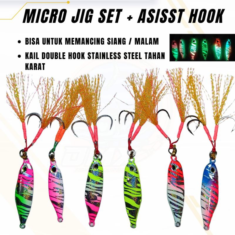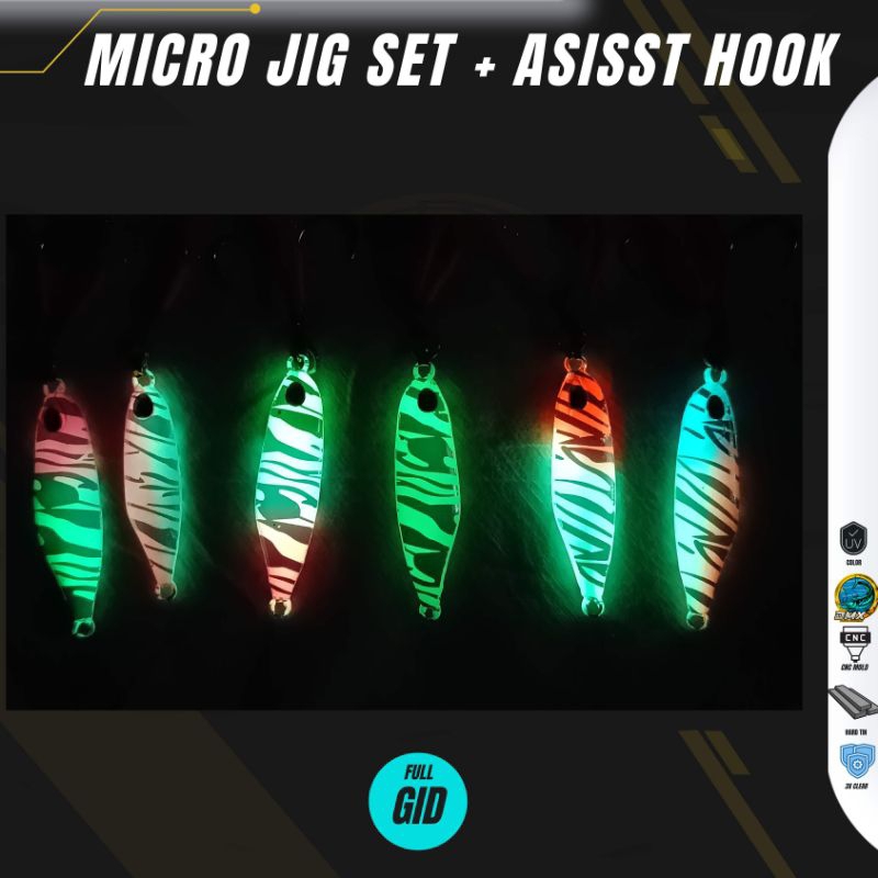 Micro jig set asisst hook full gid micro jig zebra micro jig 10gr 15gr 20gr micro jig umpan pancing Micro jig tinggal pakai Micro jig UV gid
