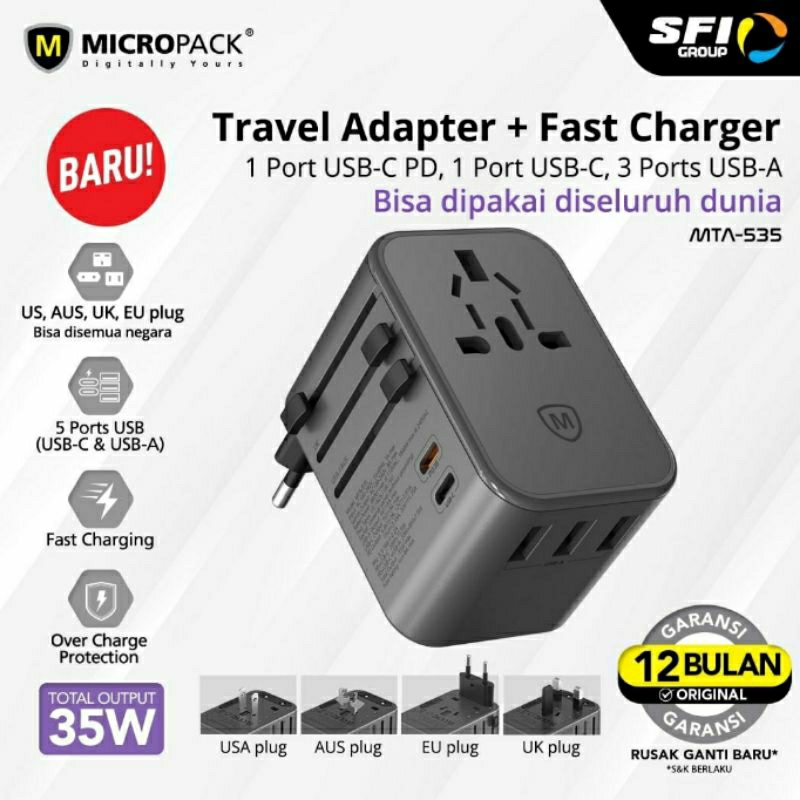 MicroPack Travel Adapter Universal 35W GaN - MTA-535 Gray
