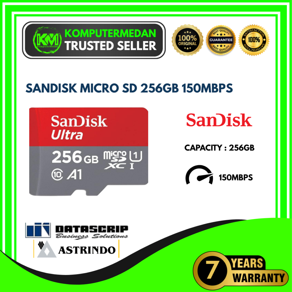MicroSD Sandisk Class10 256GB 150Mbps (Non Adaptor) SDSQUAC
