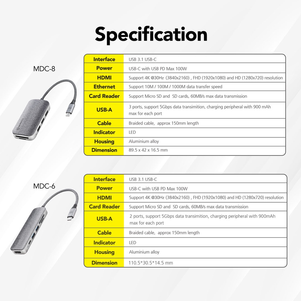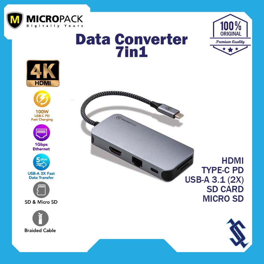 Micropack Converter Adapter All in 1 USB C Hub Type C to USB A / HDMI / SD Card / Micro SD / USB C for Laptop Macbook iPad iPhone
