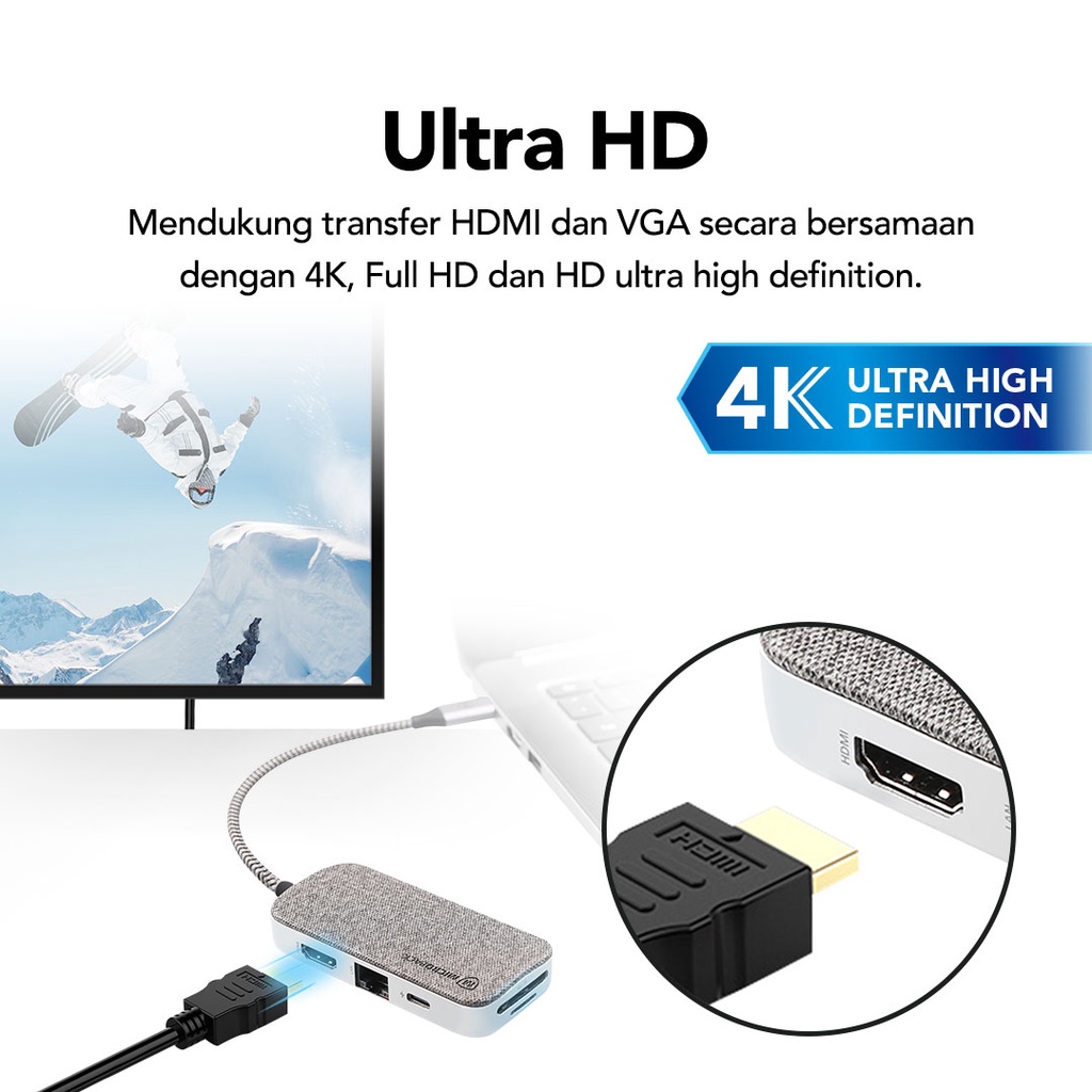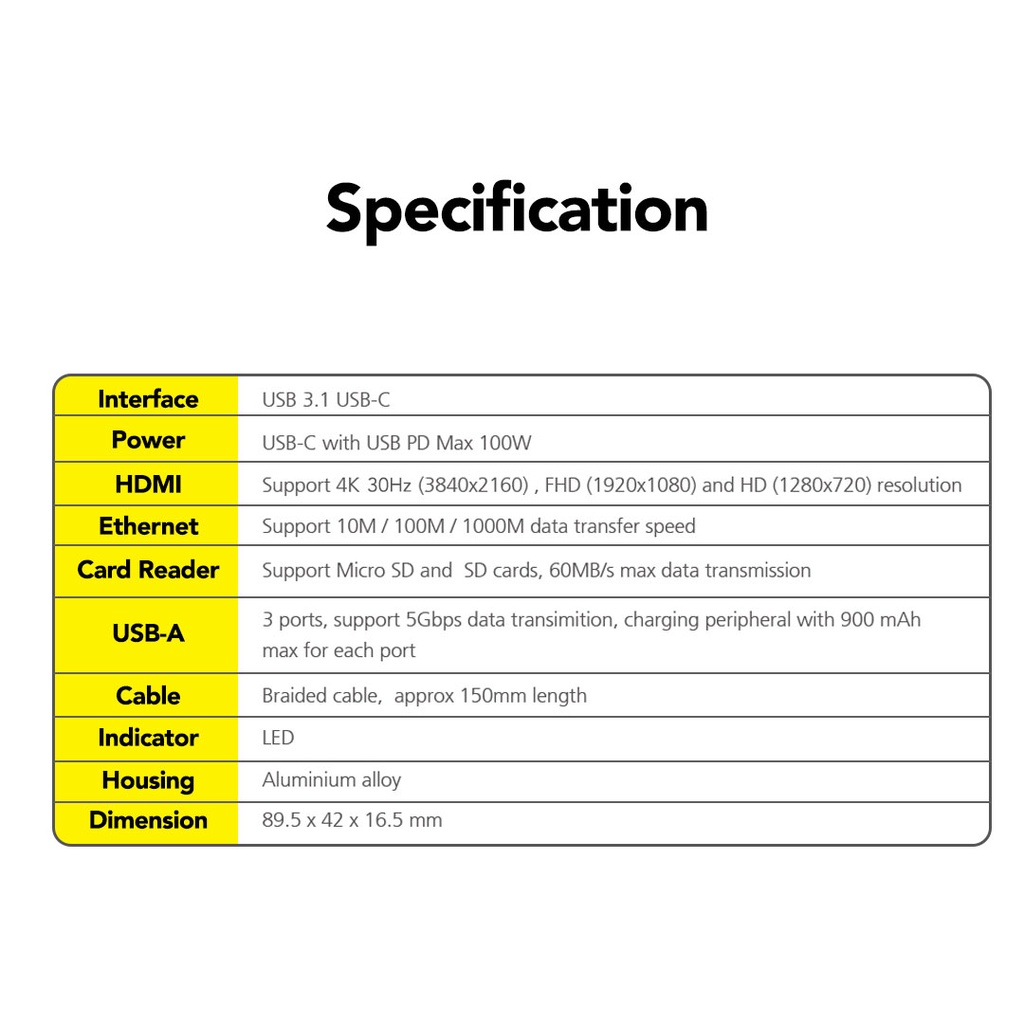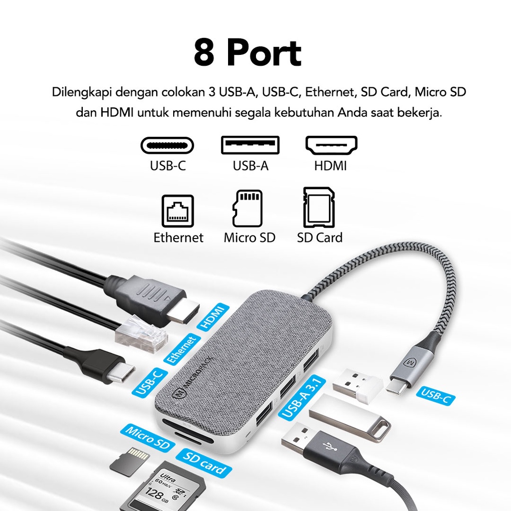 Micropack Flash 8 USB HUB USB Type C to USB A / SD / MMC / HDMI / Ethernet for Laptop Macbook TV Android Nintendo (MDC-8)