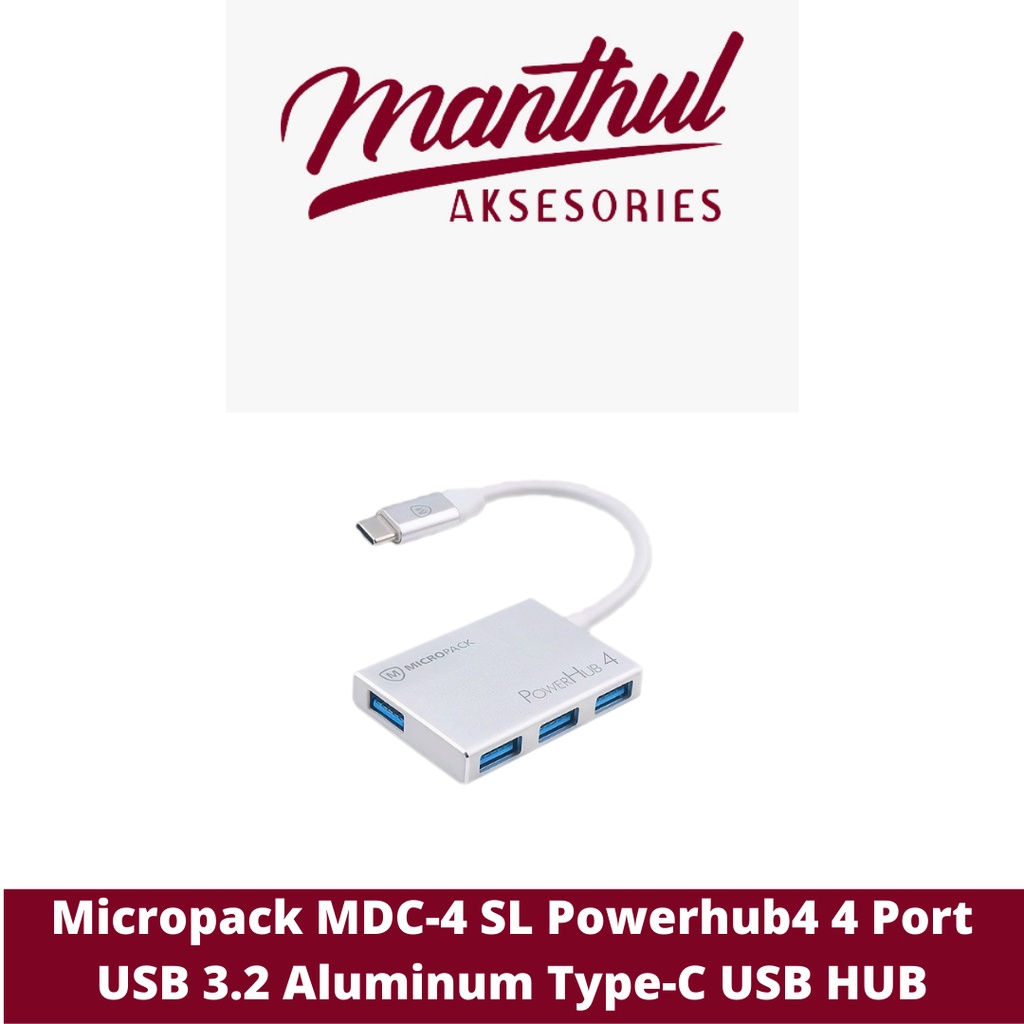 Micropack MDC-4 SL Powerhub4 4 Port USB 3.2 Aluminum Type-C USB HUB