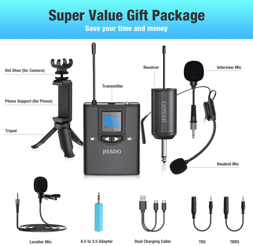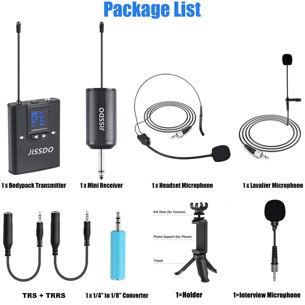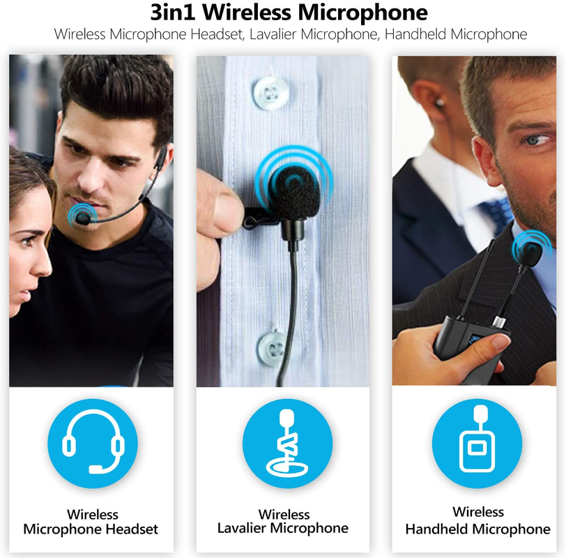 Microphone Wireless Lavalier/ Headset /Stand Handheld Mic/ Lapel Mic with Rechargeable Bodypack Transmitter for iPhone Android phone DSLR Cameras Speaker,live broadcast
