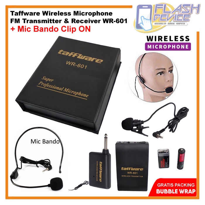 Microphone Wireless Taffware WR-601 + Mic Bando Clip On Jack 3.5mm