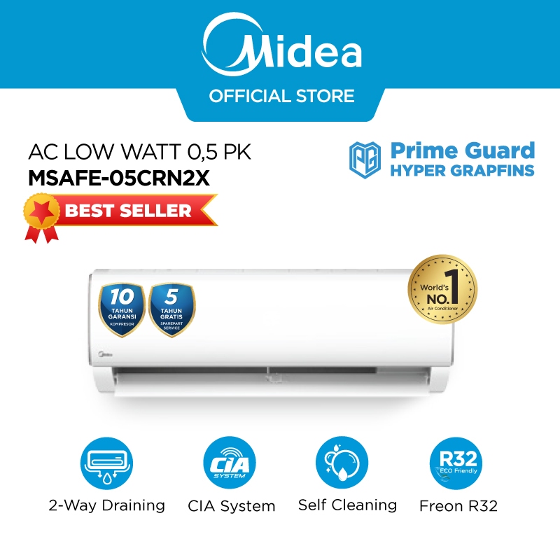 Midea AC Standard 1/2 PK (0.5 PK) - Cepat Dingin Low Watt Anti Bising Turbo Cooling (Unit Indoor & Outdoor Only)