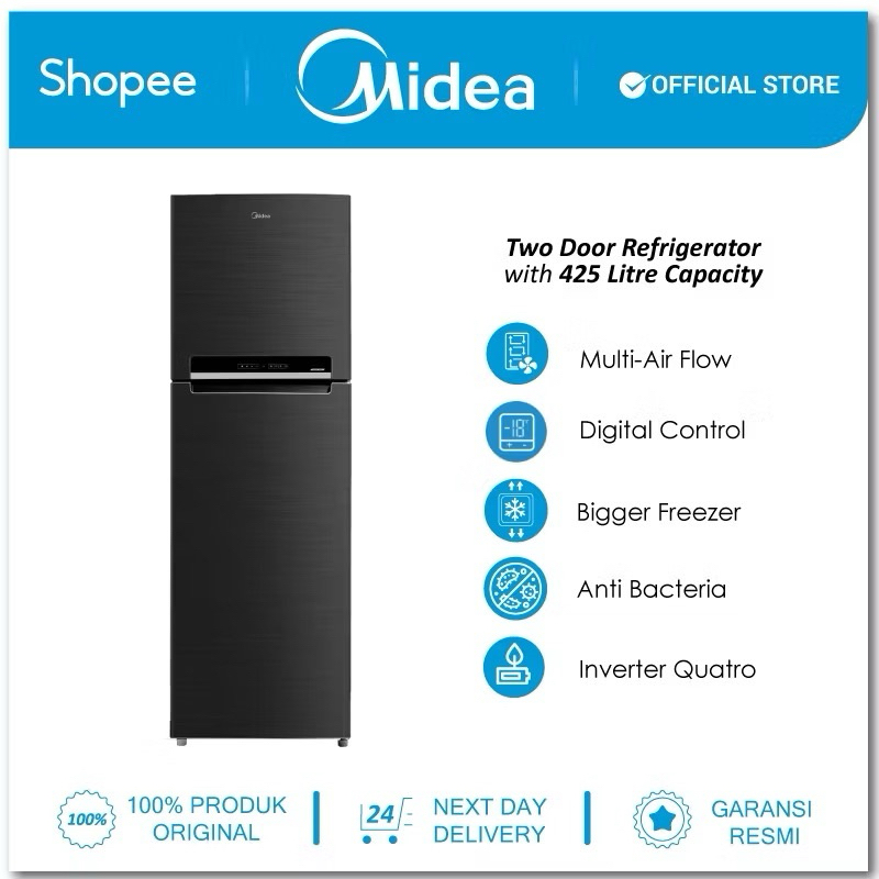 Midea Kulkas 2 Pintu 428L Inverter Hemat Listrik Freezer Besar Everest Hitam MDRT572EVF28ID