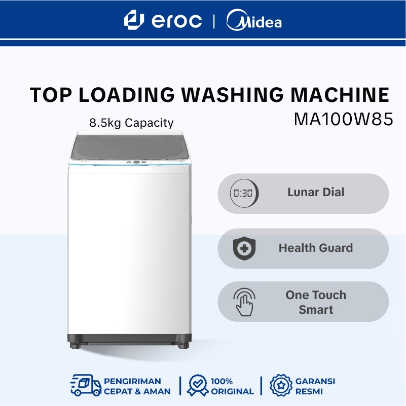 MIDEA Top Load Washing Machine 8.5kg - MA100W85 - One Touch Smart Wash