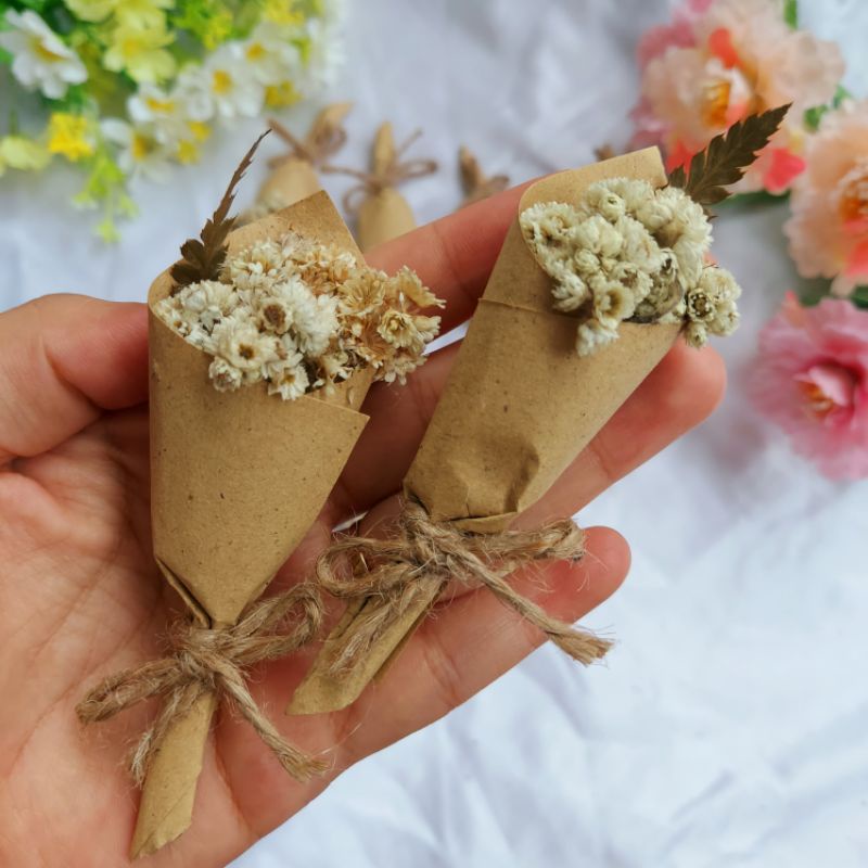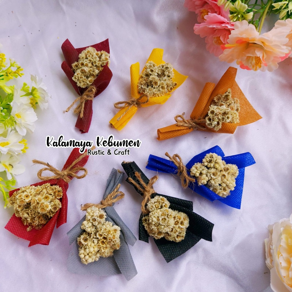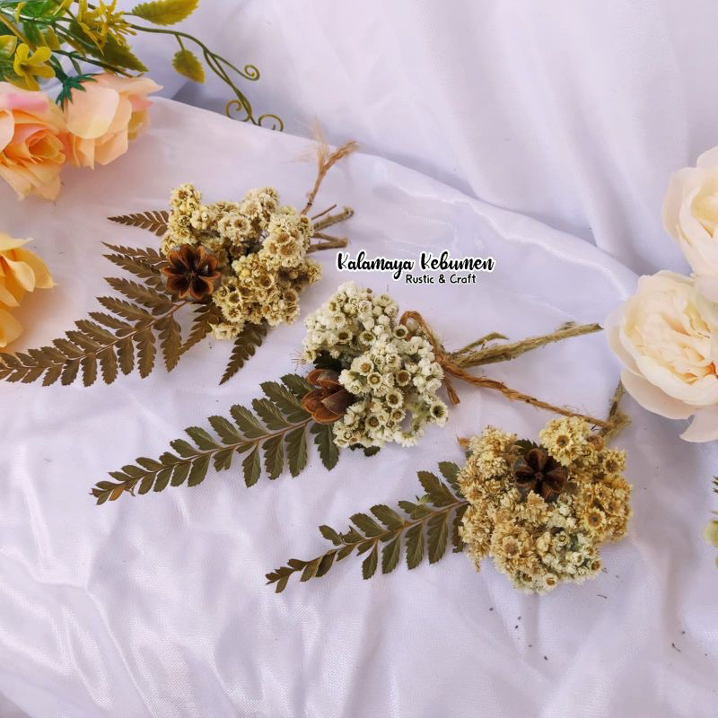 Midi Puspo Abadi Hiasan Buket Bunga Edelweis Kering Dekorasi Rustic Mahar Craft Dried Flower Poperty Foto
