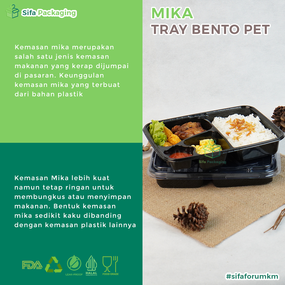Mika Bento Sekat 4 + Tutup Lunch Box Wadah Makanan Tempat Makanan Sekali Pakai Tray Kotak Bento