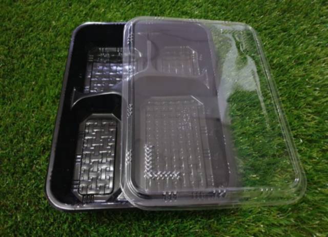 Mika Tempat Nasi Box Bento 1 Take Away isi 50pcs Mika Plastik Sekat 4 Tahan Panas Food Grade PP