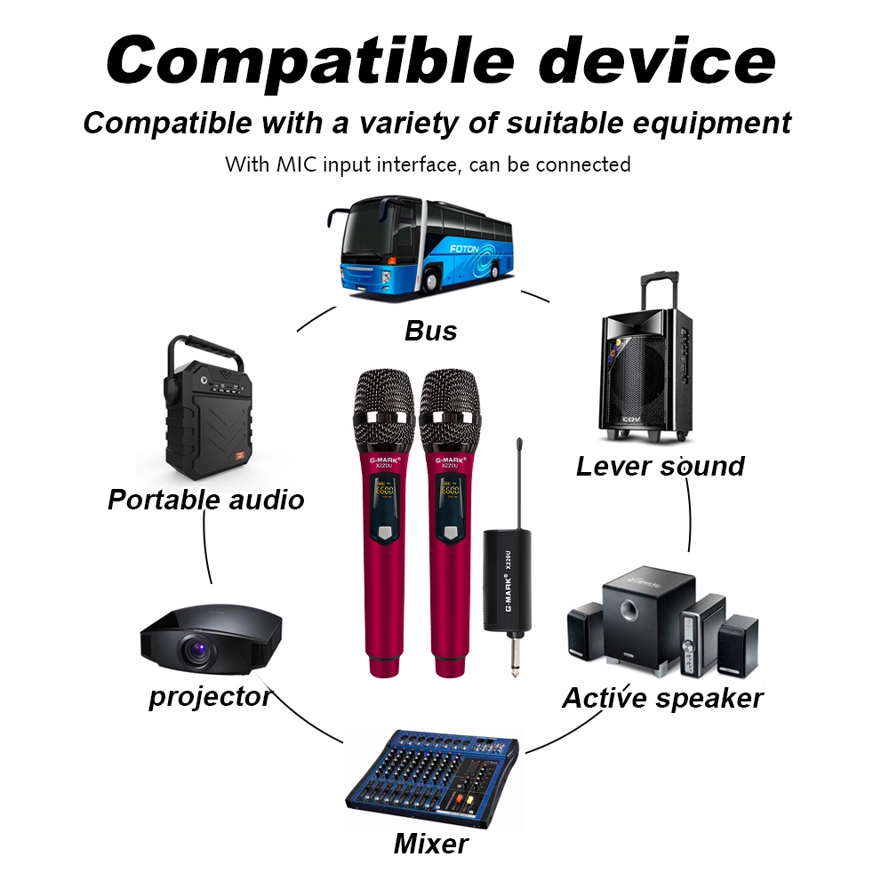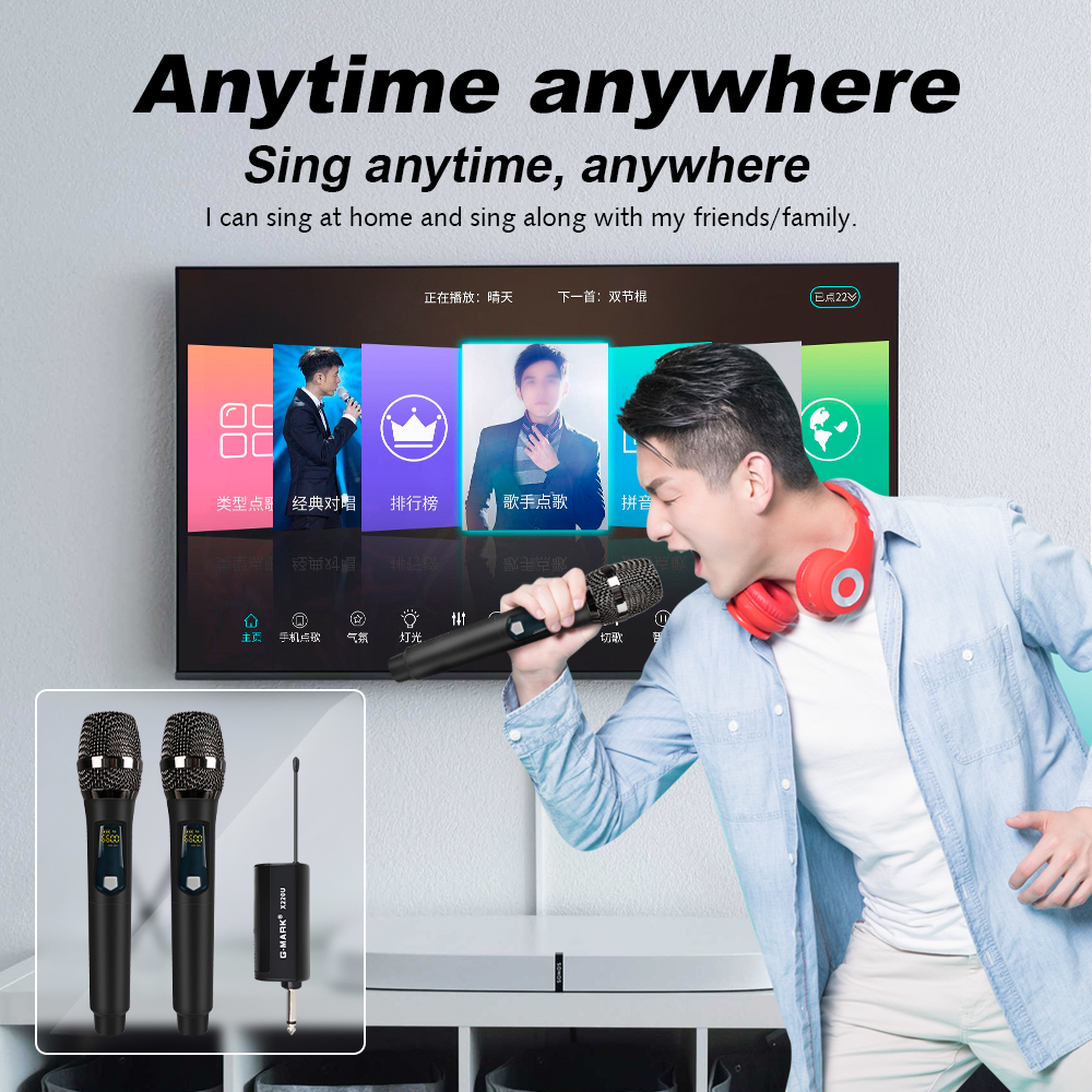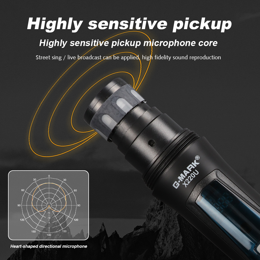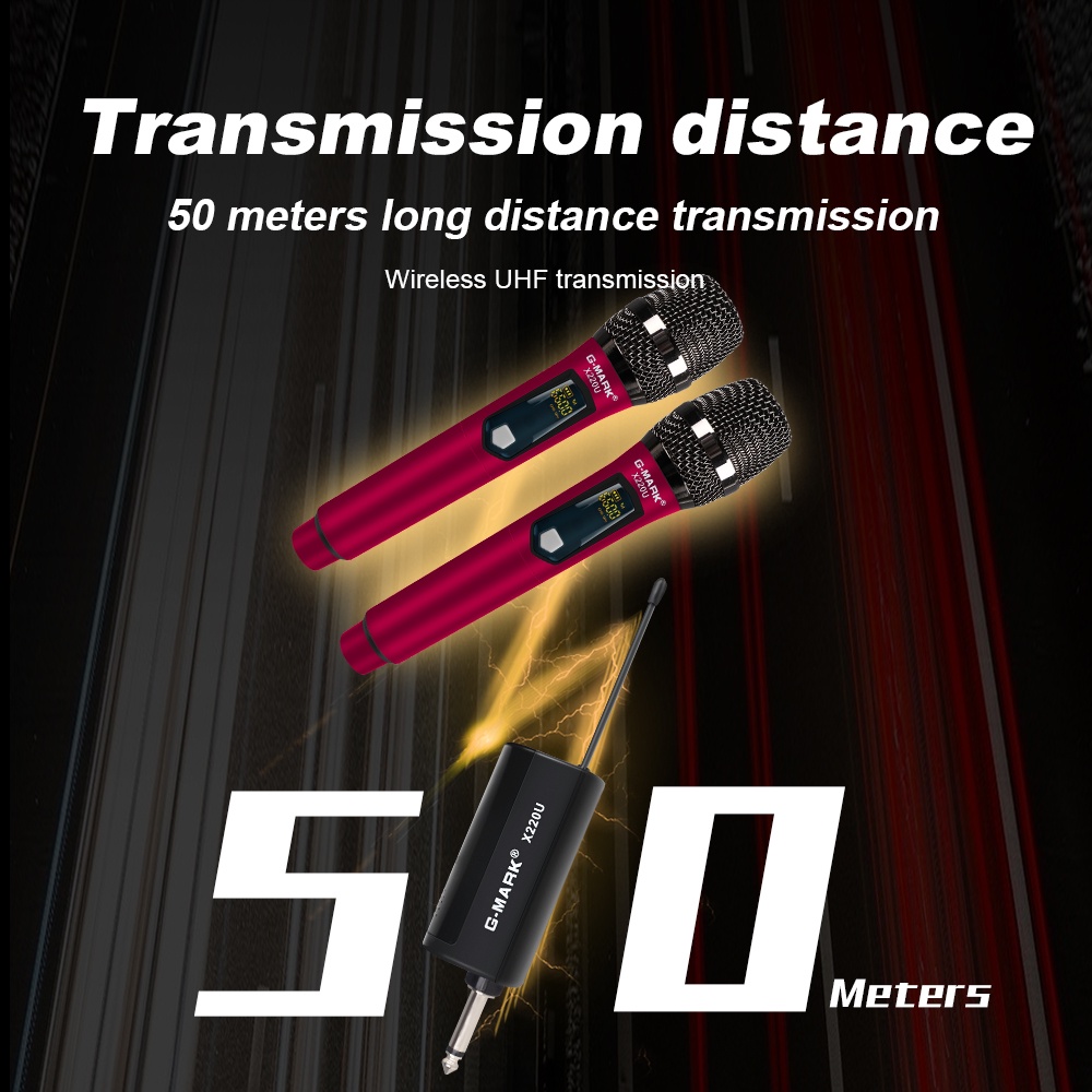 Mikrofon Nirkabel G-MARK X220U Mikrofon Karaoke Nirkabel UHF Portabel dengan Penerima Mini 1 Mikrofon Genggam, Jarak Penerimaan 50 Meter, Cocok untuk Konferensi, Pesta Rumah, Sekolah, Gereja, Panggung