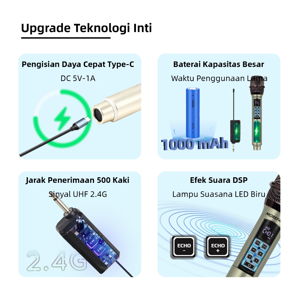 Professional Wireless Microphone Efek DSP Rechargeable Dynamic Micro For Videoke Mikrofon Nirkabel/Mikrofon Karaoke Ganda/Mic Karaoke Wireless Asli Profesional