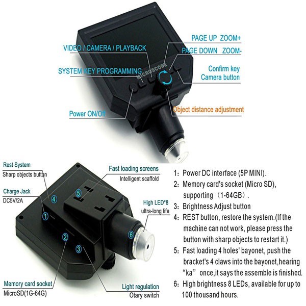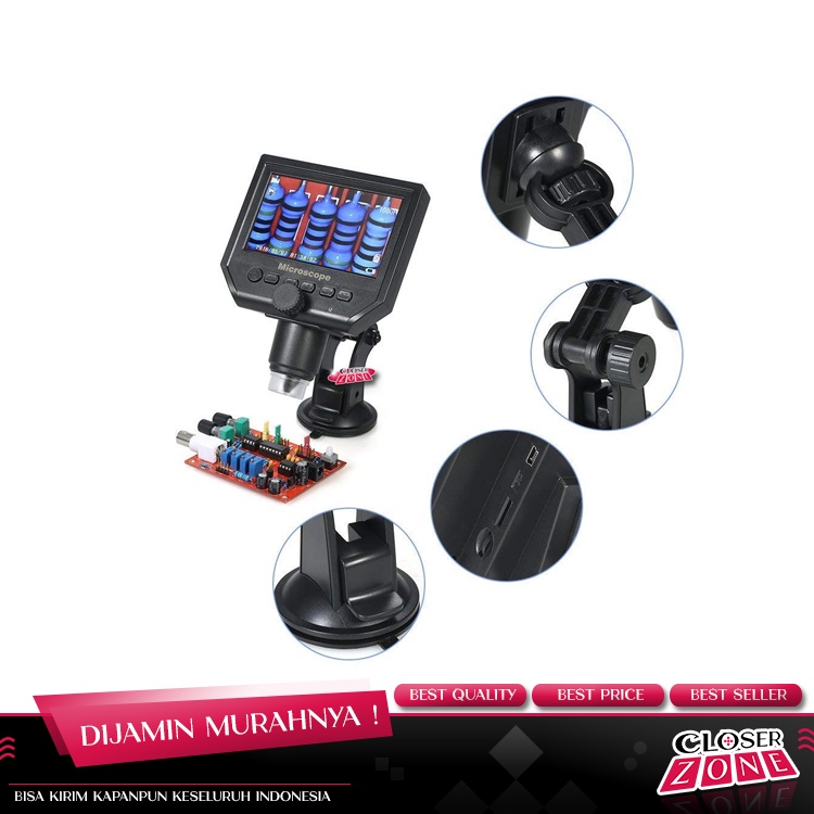 Mikroskop G600 Digital 3.6MP 600X dengan Monitor & Suction Cup Stand