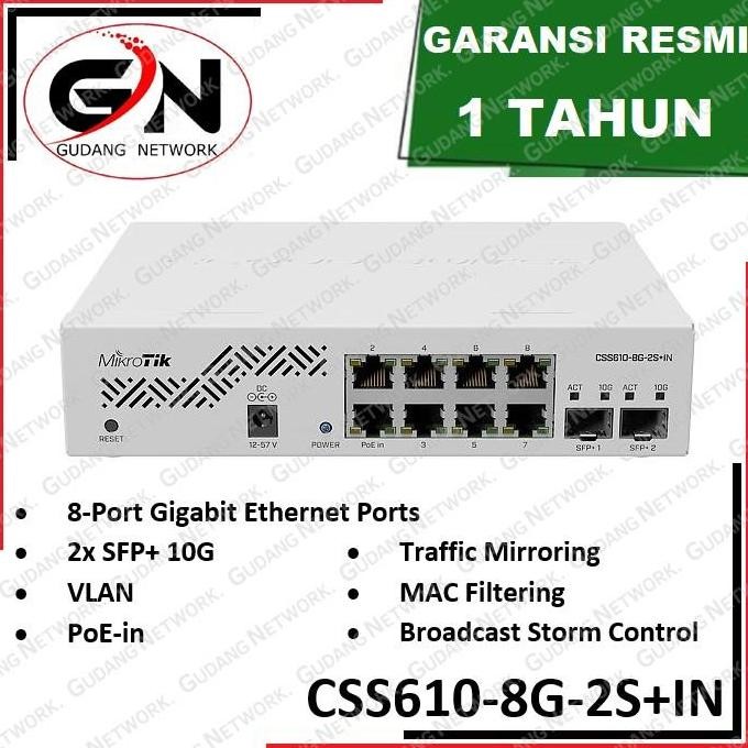 Mikrotik Css610-8G-2S+In Cloud Smart Switch 8-Port Gigabit 2 Sfp+ 10Gb New Stok