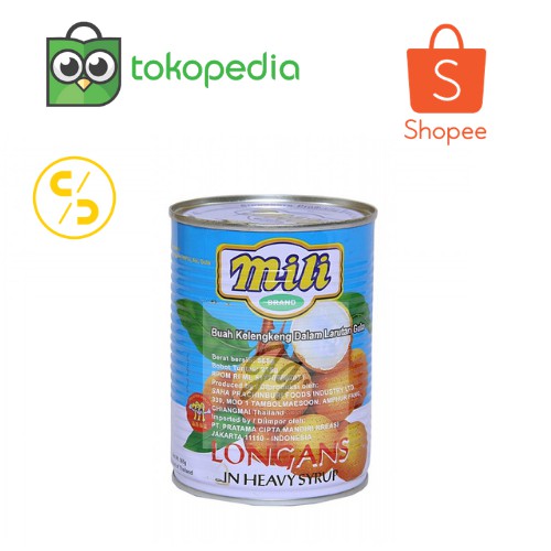 Mili longan buah kaleng in heavy syrup 565g / lengkeng kaleng mili 565g