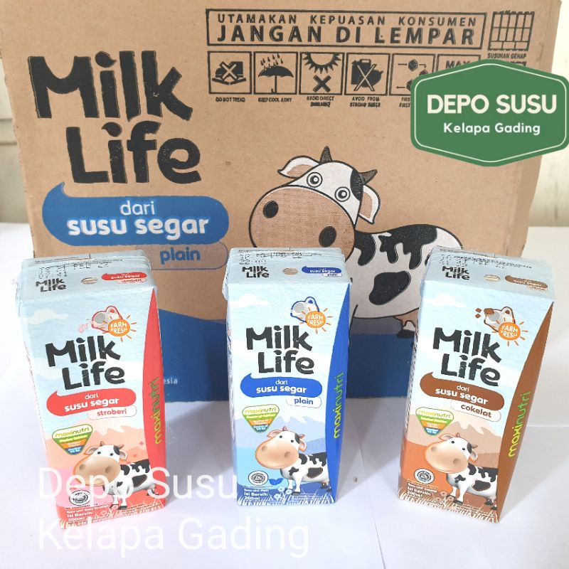 Milk Life UHT 200ml X 24pcs| Vanilla Coklat Strawberry Milklife Susu 200 ml