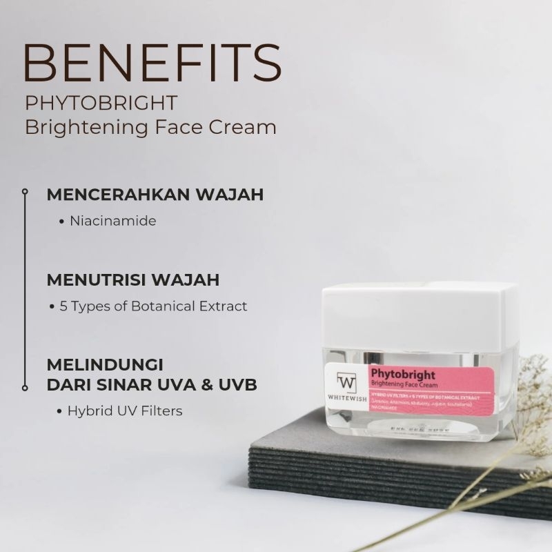 AFTERSKIN x WHITEWISH Phytobright Brightening Face Cream Tone Up - Moisturizer Mencerahkan Kulit Wajah - Skincare Day & Night Cream Original - Kemasan Putih Pink