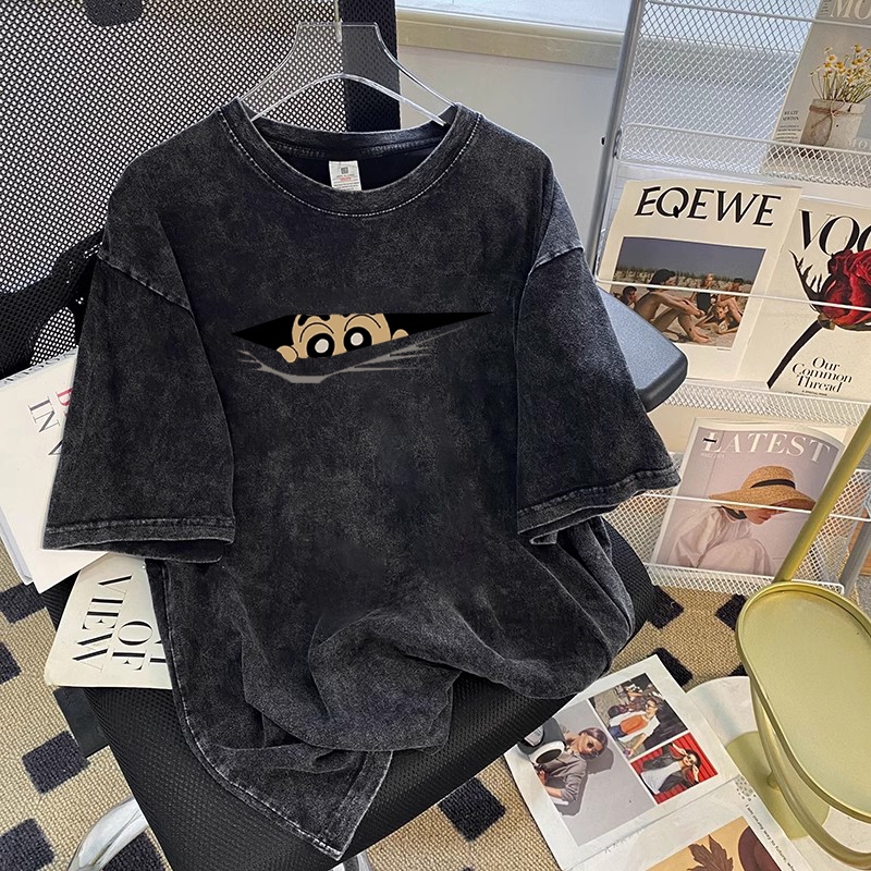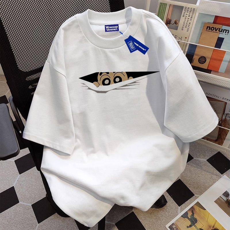 Krayon xiaoxin Koreaimut-imut Kartun pencetakan baju atasan wanita terbaru kaos pria oversize couple t shirt vintage