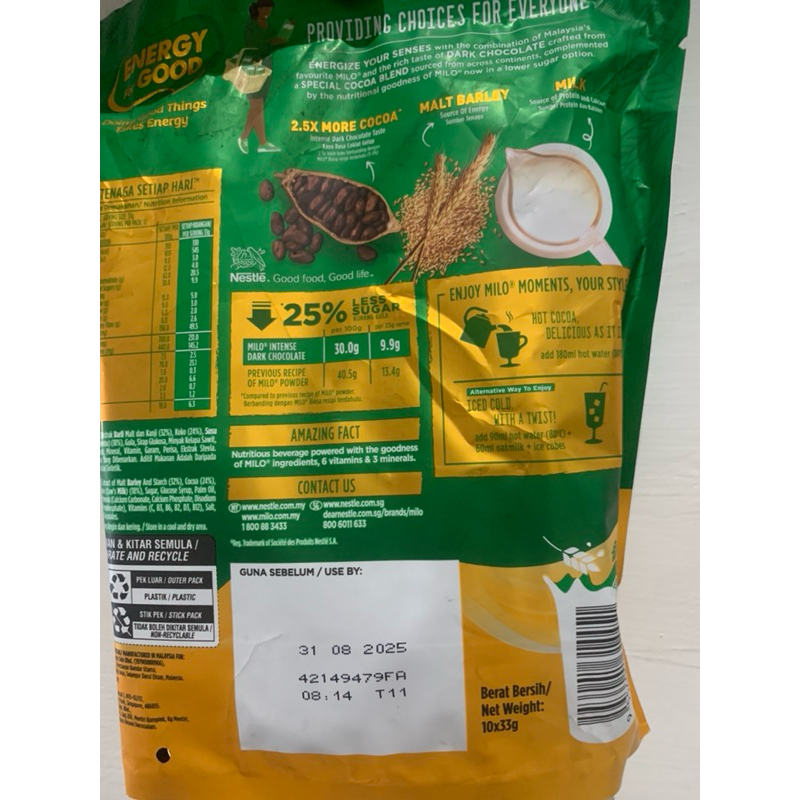 Milo Intense Dark Chocolate (10 Sachet)