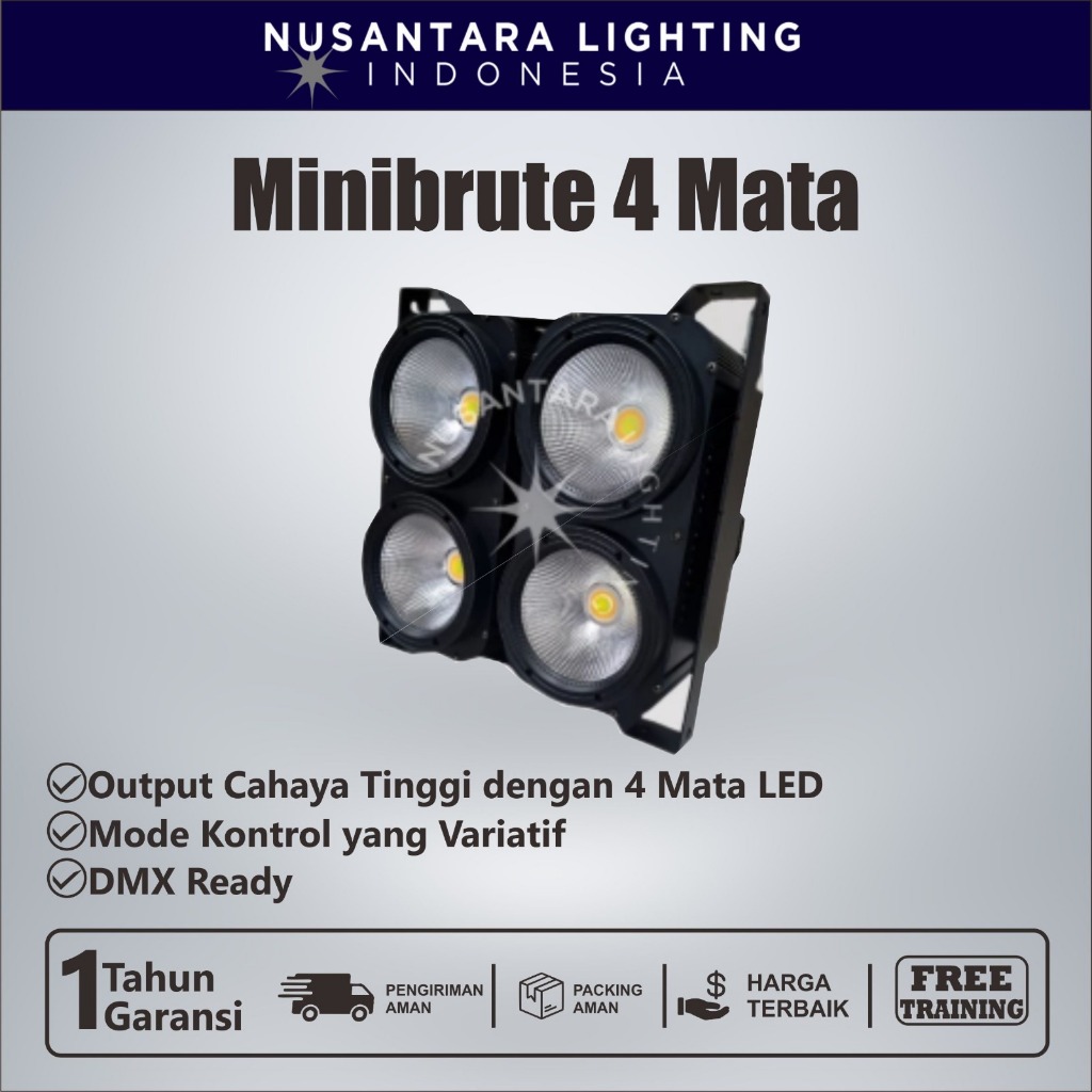 Mini Brute 4 Mata / Minibrute 4 Mata Lampu Sorot Panggung Konser Theater / Lampu disco panggung / Lampu disko panggung / Lampu lighting panggung / Lampu disco / Lampu panggung / Cairan fogging disinfektan / Mesin fogging