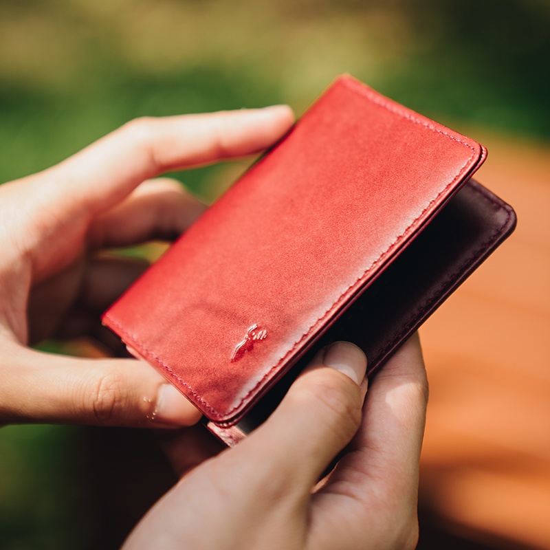 Mini Card Holder Mini Dompet Kartu Dompet Souvenir Wanita Pria Bahan Kulit Asli GARANSI SEUMUR HIDUP 100% Original BISA CUSTOM NAMA & LOGO STARKE Urbane Pudu Maroon