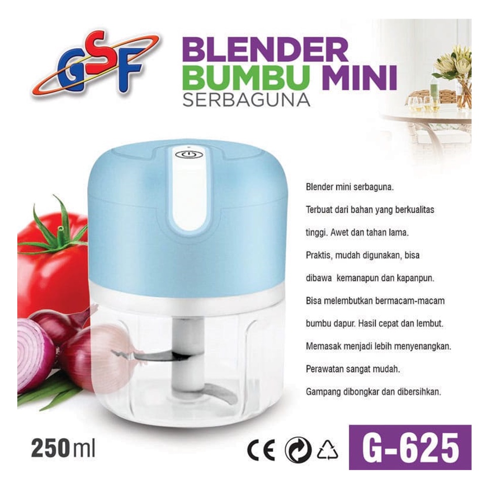 Mini Chopper Processor Portable Electric Rechargeable USB - Blender Bumbu Dapur Sayur Buah Mini Elektrik 250 ML GSF G 625 / GSF 30051