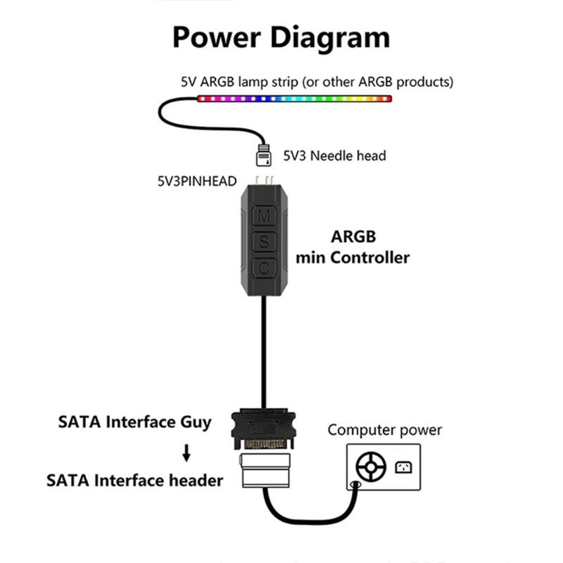 Mini Controller / Pengontrol ARGB AR-1 Manual 5V 3Pin ke Power Sata