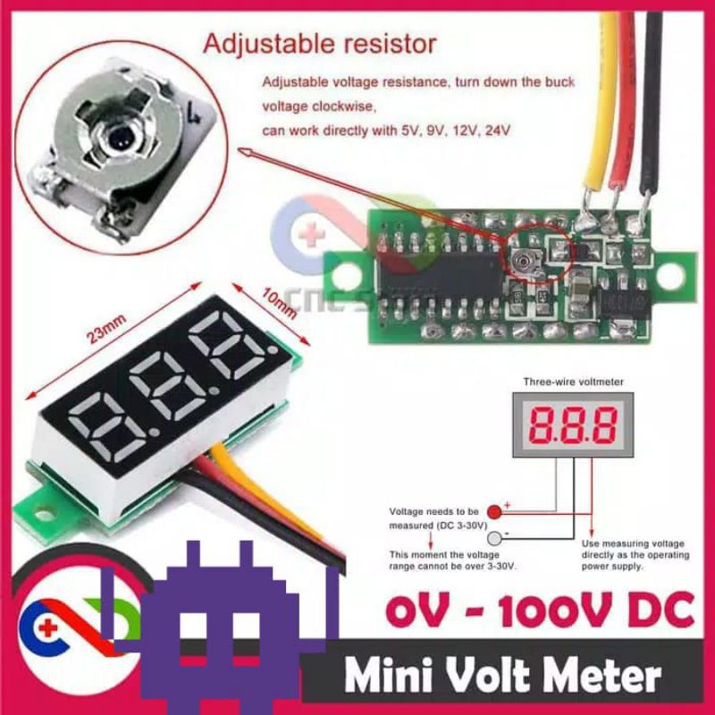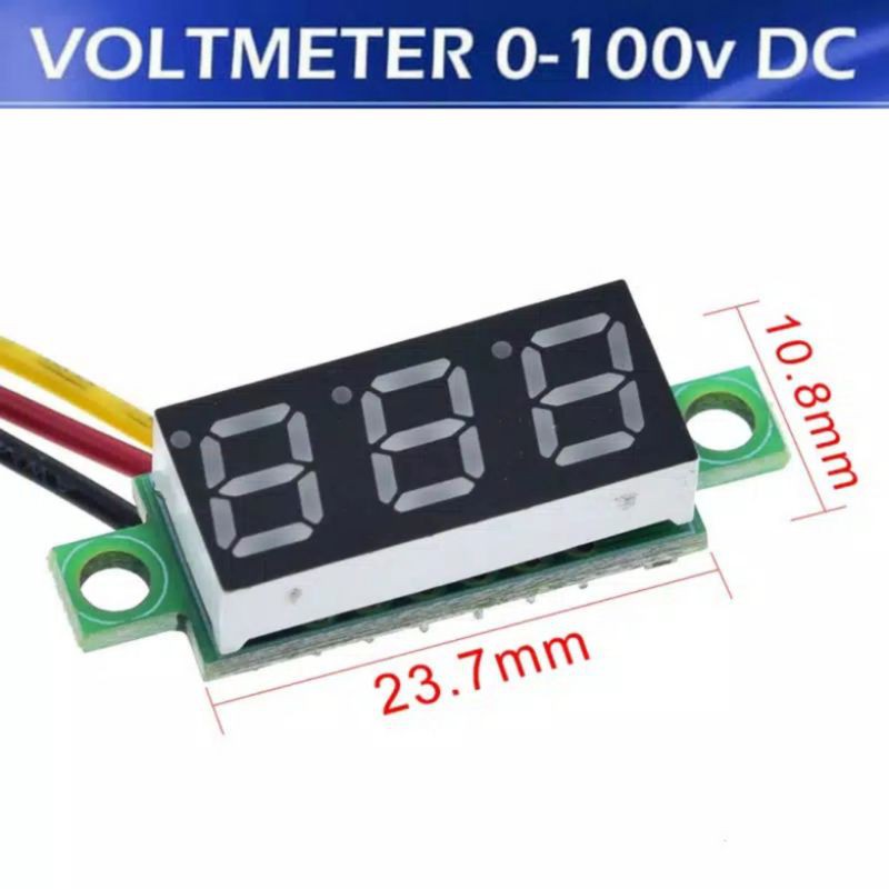 Mini Digital Voltmeter 0.28" 0-100V DC 3 Kabel Volt Panel Volt Meter