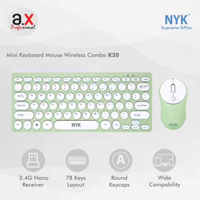 Mini Keyboard Mouse Wireless Set NYK K20 - Light Green