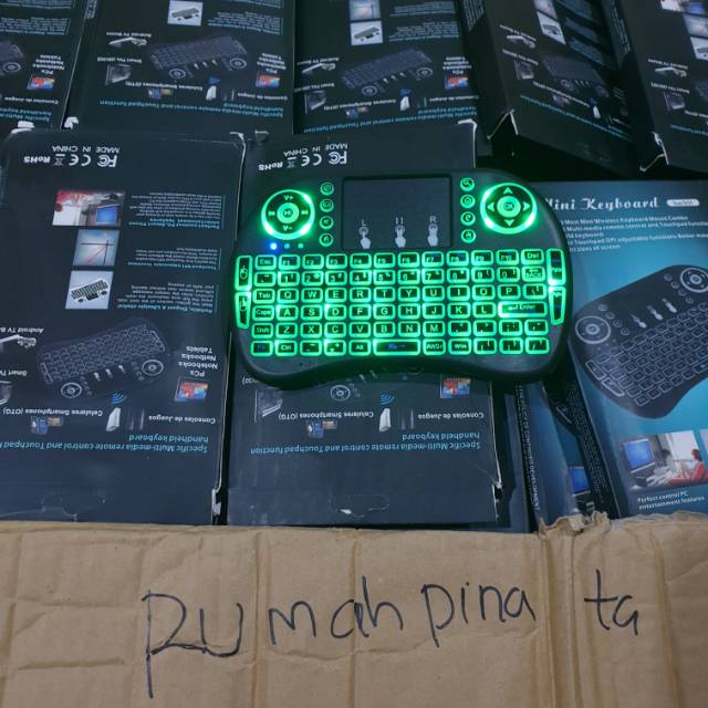 Mini Keyboard wireless i8 with 3 colour blacklight include baterai BL5C Blacklight