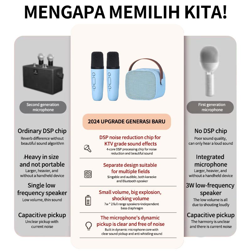 [COD]Mini Speaker Bluetooth 2 mic 1 Karaoke /Bluetooth 5.3 Mini Speaker Karaoke /Speaker Microphone Karaoke Set