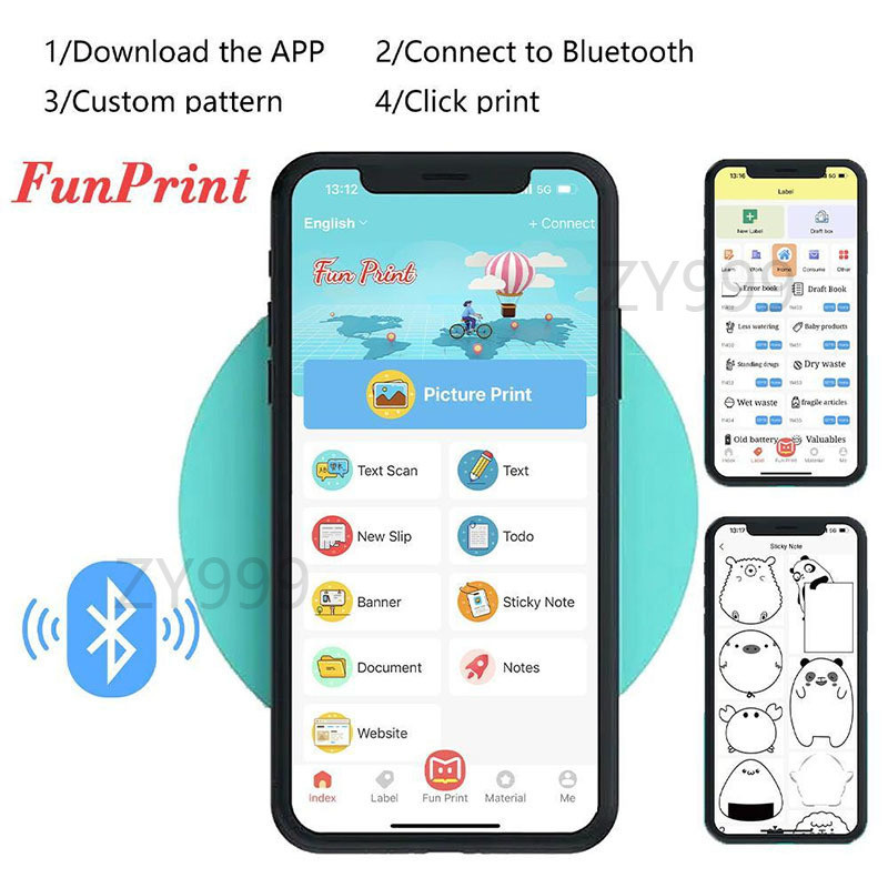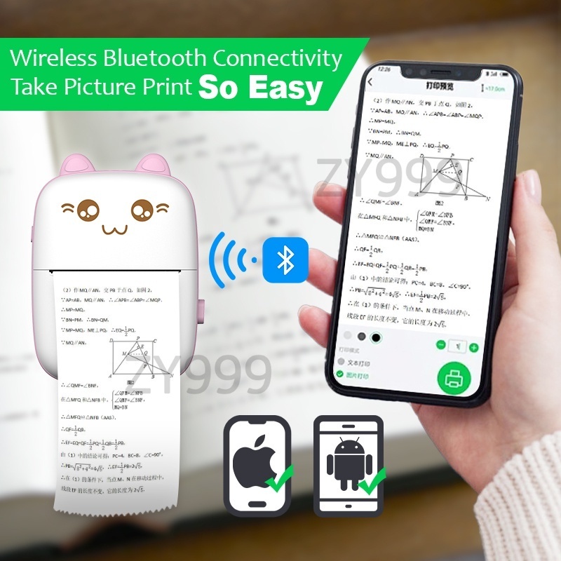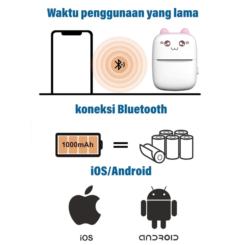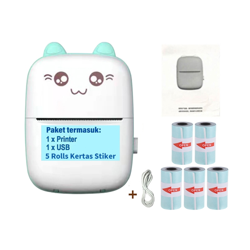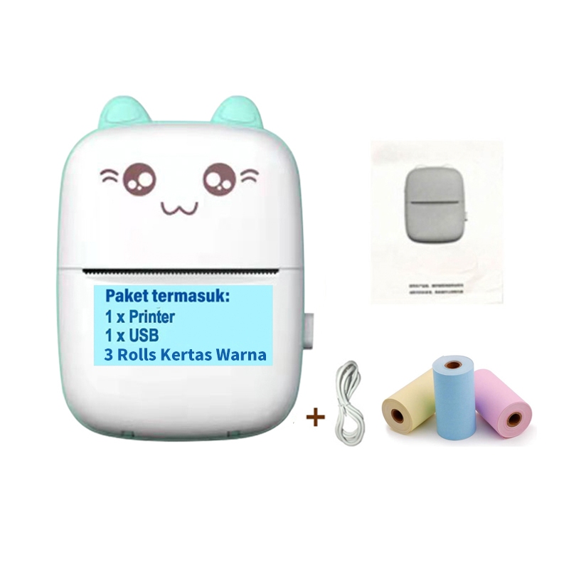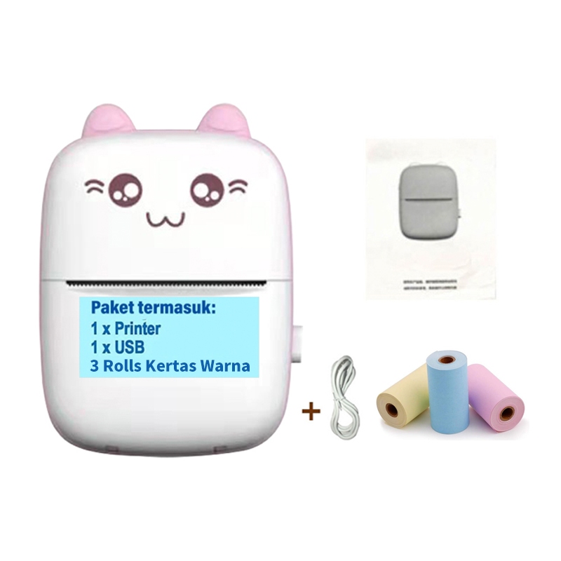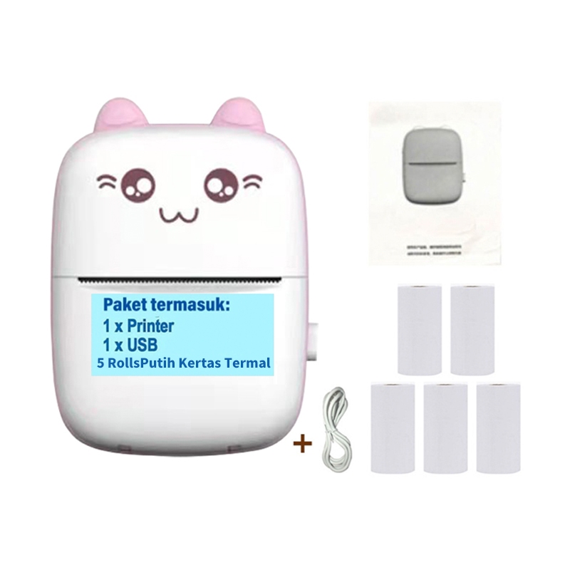 Printer Mini Thermal Printer Bluetooth Portable Tanpa Tinta Printer Cute Label Receipt Barcode Print
