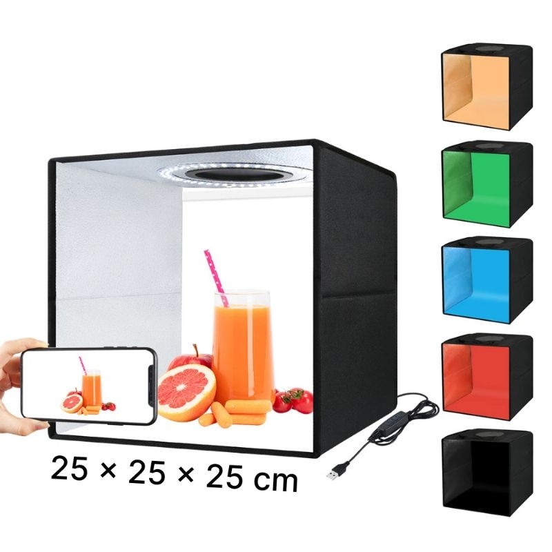Mini studio box lengkap led lighting layar latar background mini foto studio box lipat portable kotak foto studio online shop light room box foto folded soft box paket mini studio box small medium kecil sedang ring led light latar layar fotografi produk