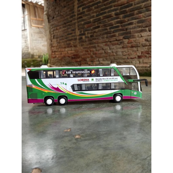 Miniatur Bus Lorena Double Decker Full Spek Bahan Triplek + Telolet Basuri