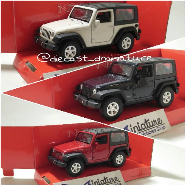 Miniatur Diecast Mainan mobil merk Welly NEX skala 1/34 Jeep Wrangler Rubicon Soft Top