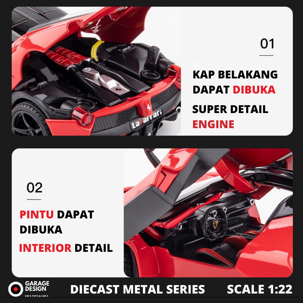 Miniatur Diecast Mobil Ferrari RAFA 1:22 - Mobil FERRARI Alloy Model Metal Series Merah Skala 1/22