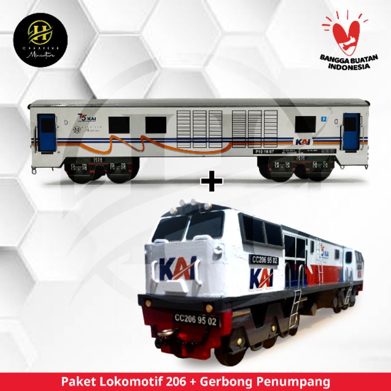 Miniatur Kereta Api_paket loko dan gerbong penumpang, cargo n pembangkit