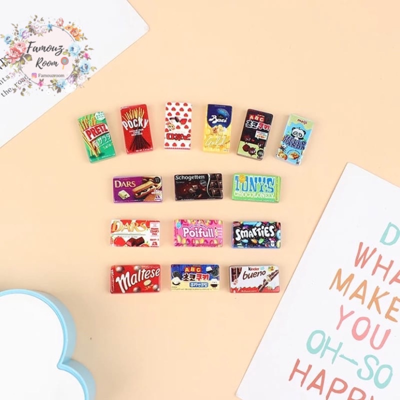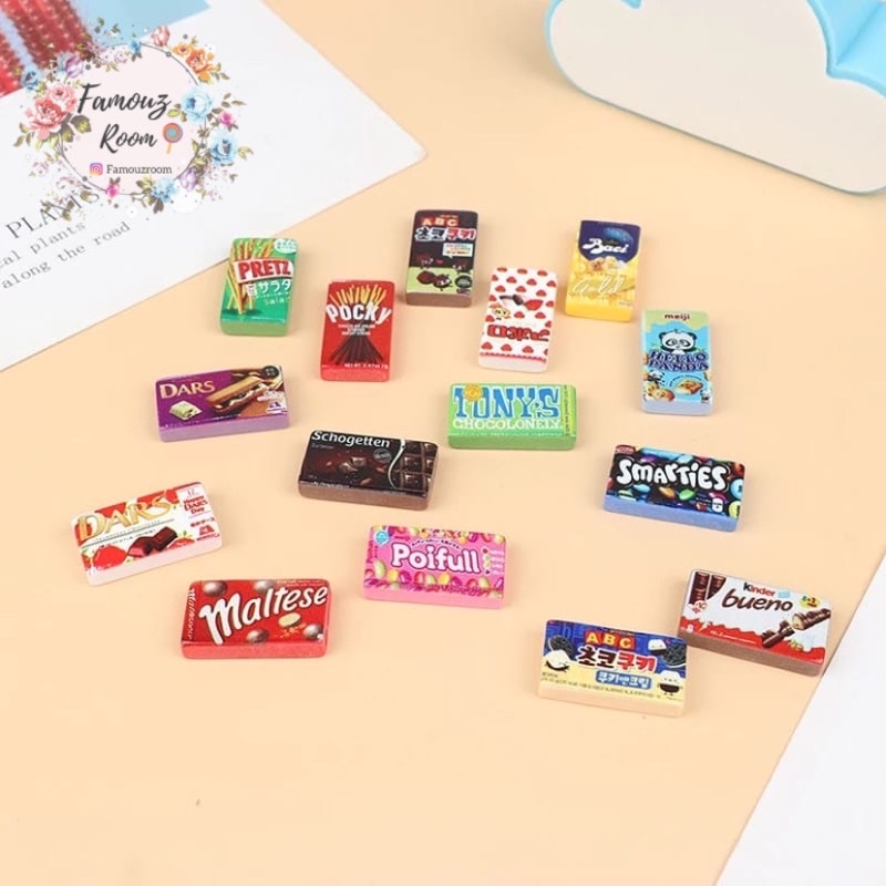Miniatur Makanan Ringan 1:6 - Miniatur Snack - Miniatur Pocky - Miniatur Kinder Bueno - Miniatur Permen Artificial - Hiasan Rumah Boneka Barbie