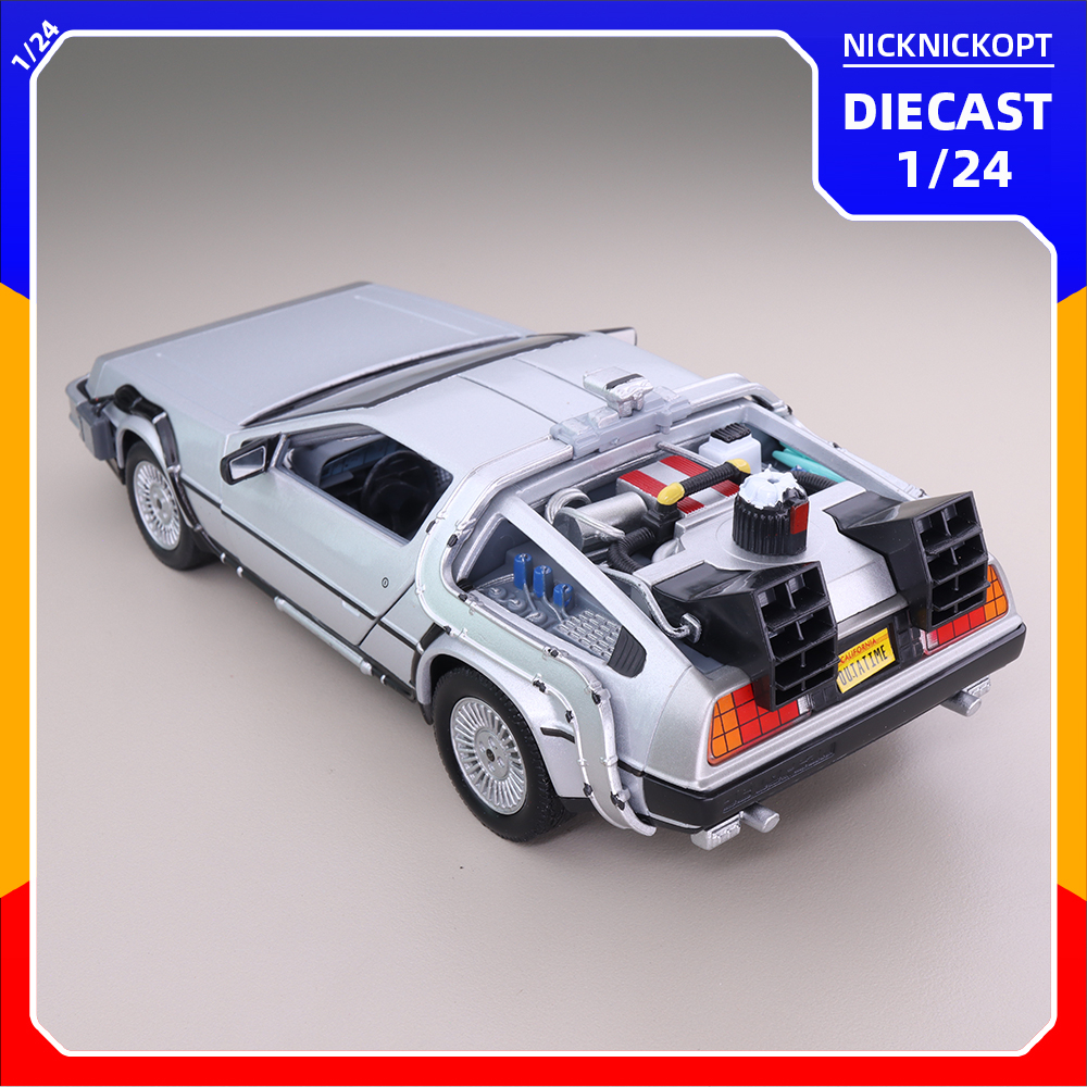 Miniatur Mobil Welly DeLorean DMC-12 Back to the Future II Time Machine Land Version Diecast Skala 1:24 Mainan Koleksi