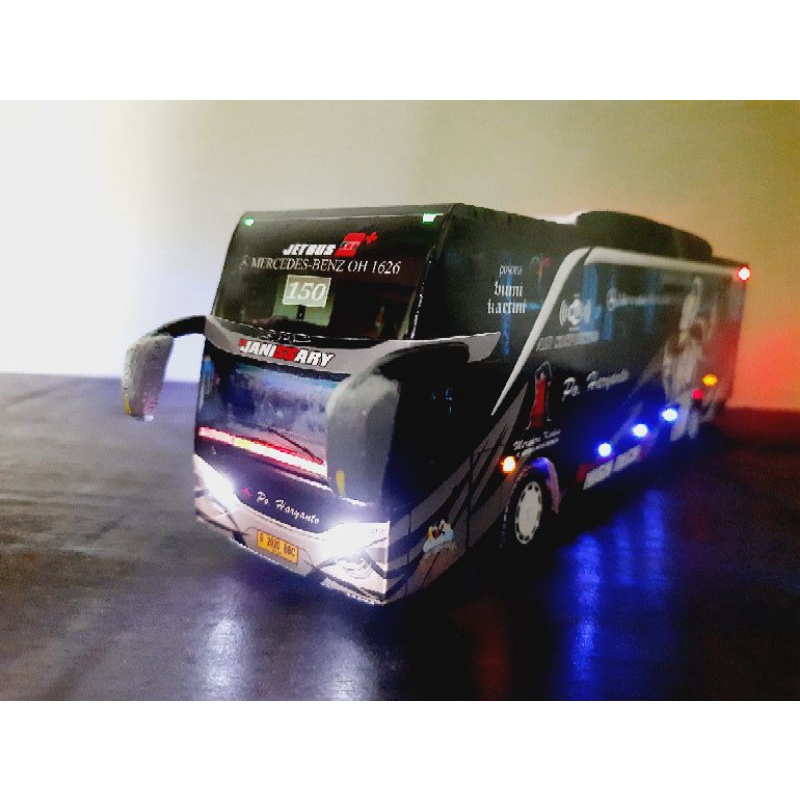 Miniatur bus RC Po Haryanto JANISSARY ( Remot Control ) DETIL RAPIH FULL TELOLET FULL STROBO FULL LED
