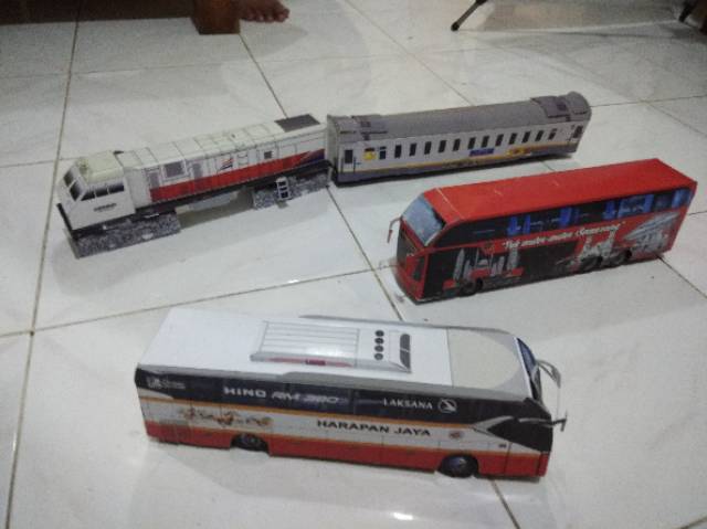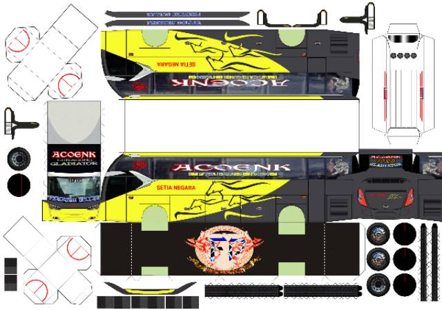 Miniatur bus papercraft lembaran