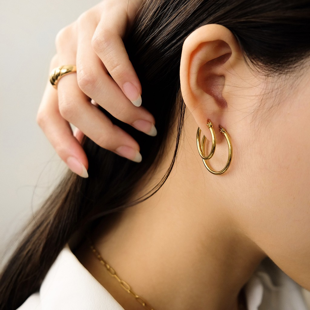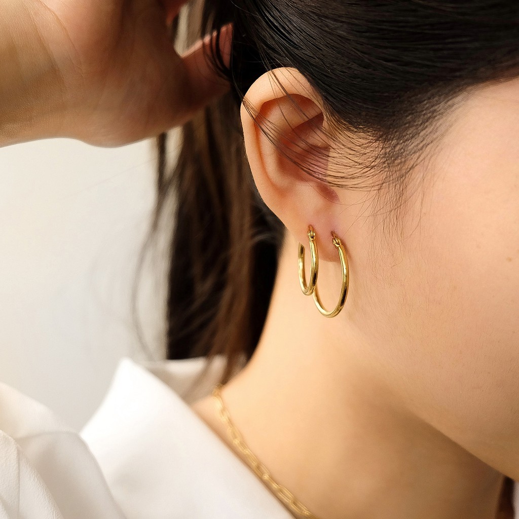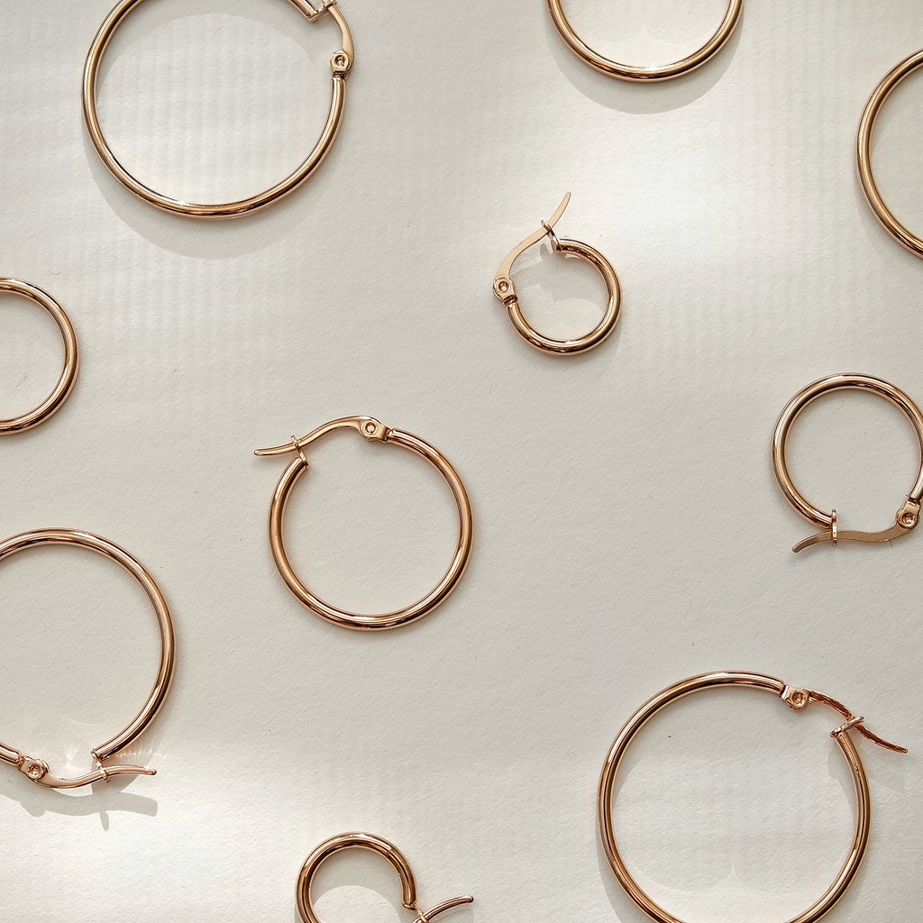 Minimal Petite Hoops Earrings — 18K Rose Gold Plated Silver Stainless Steel Anting Hoop Anti Karat